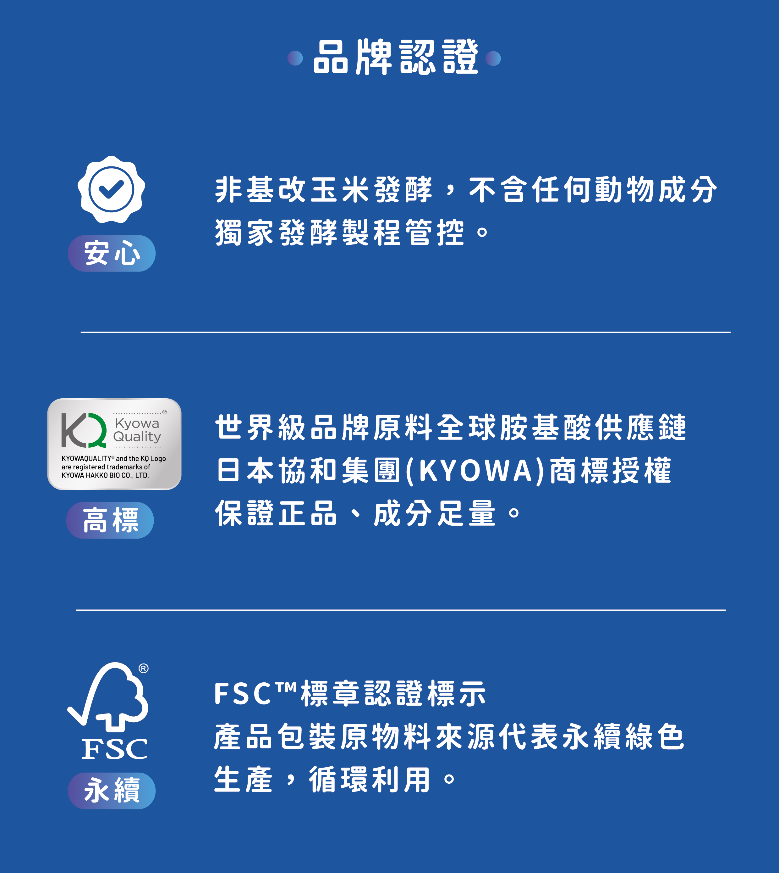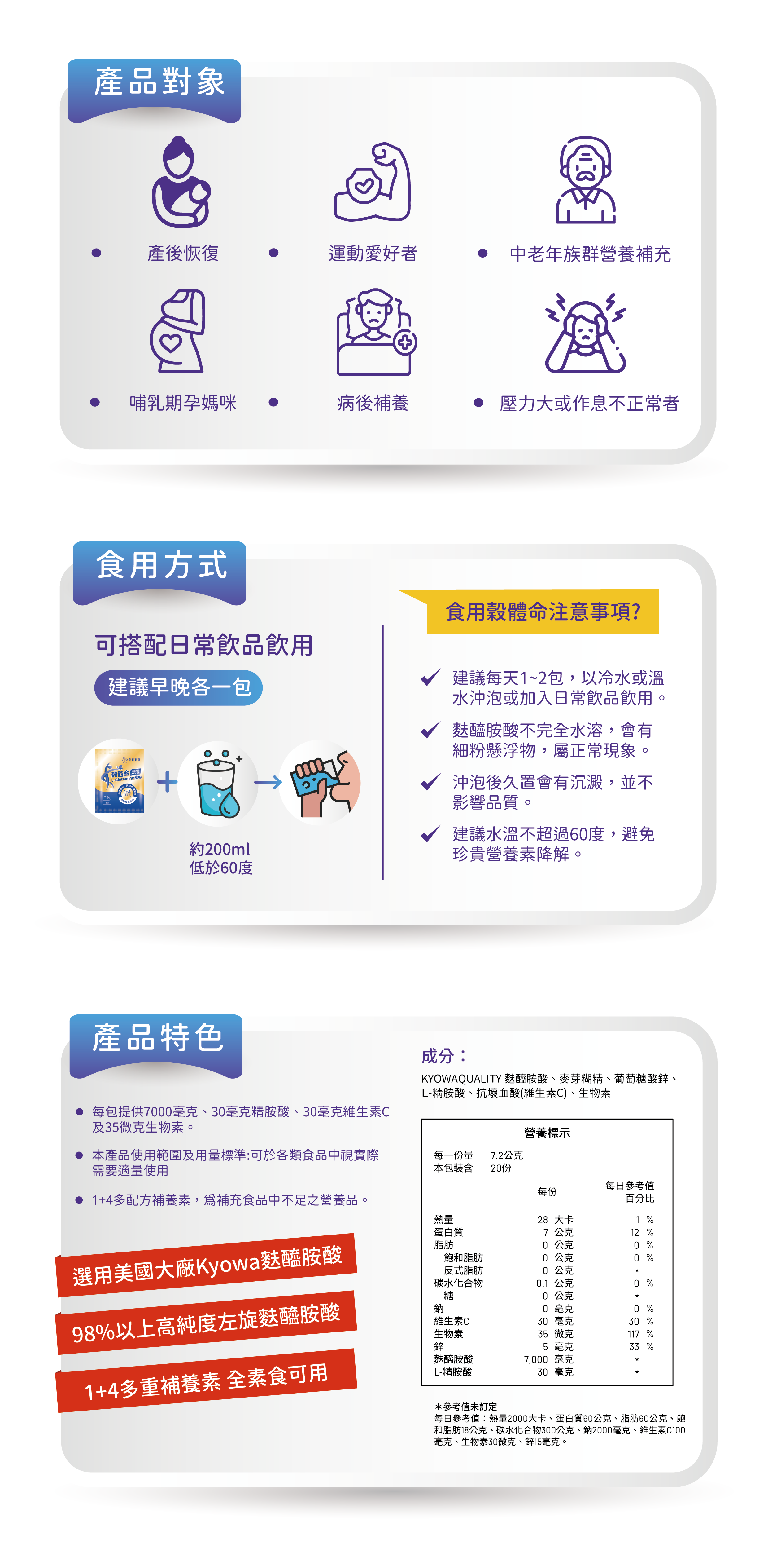 成分:KYOWAQUALITY 麩醯胺酸、麥芽糊精、葡萄糖酸鋅、